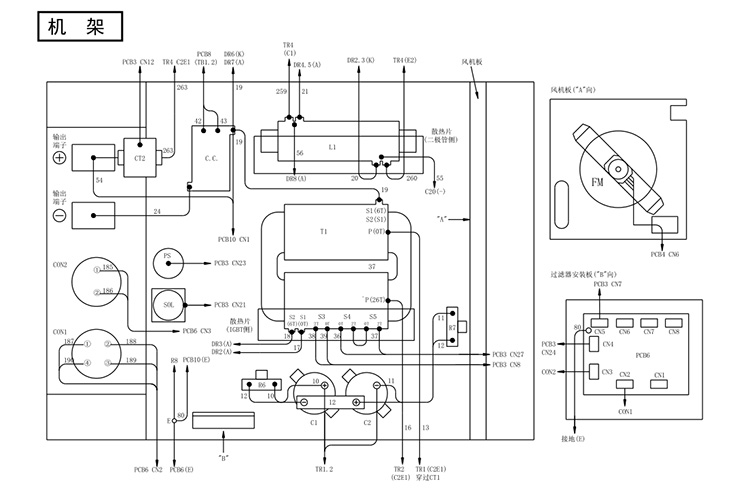 1.配件符號(hào):T1,型號(hào)是:C0111B00,名稱:逆變變壓器,規(guī)格:C0111B00。